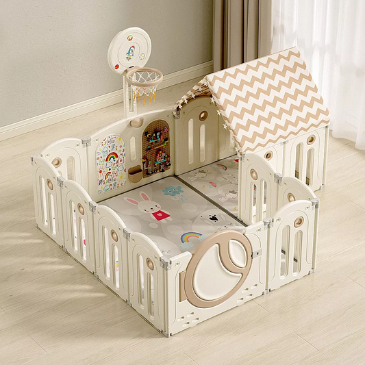 Corral plegable para bebes con casita y Juegos Seguro y Resistente