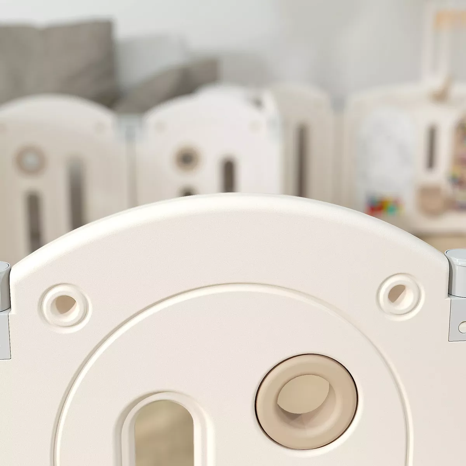 - RESISTENTE Y SEGURO: mantiene su forma y posición gracias a sus fuertes conectores de bisagra y almohadillas antideslizantes; incluye una puerta con bloqueo de seguridad que permite un acceso cómodo y asegura a su bebé en el interior.